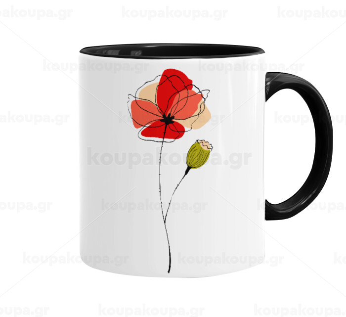 Red poppy flowers papaver, Mug colored black, ceramic, 330ml