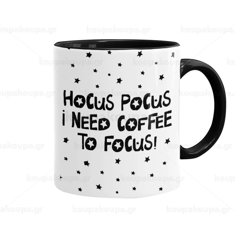 Hocus pocus i need coffee to focus - halloween, Mug colored black, ceramic, 330ml