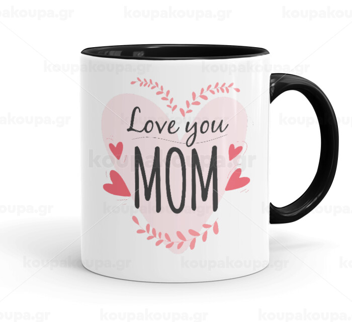 Mother's day I Love you Mom heart, Mug colored black, ceramic, 330ml