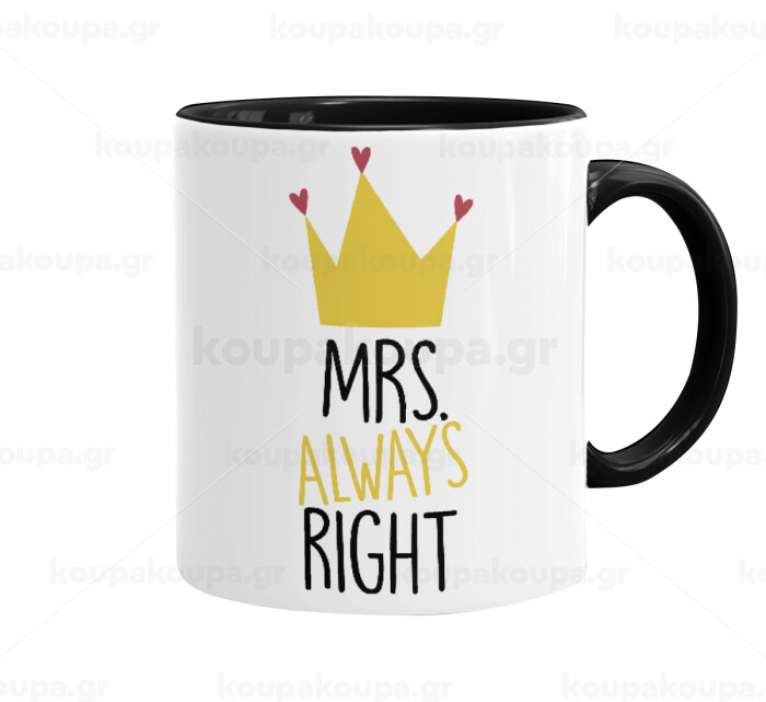 Mrs "Always" right, Mug colored black, ceramic, 330ml