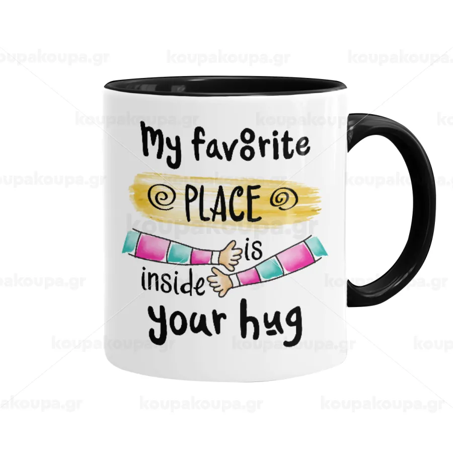 My favorite place is inside your HUG, Mug colored black, ceramic, 330ml