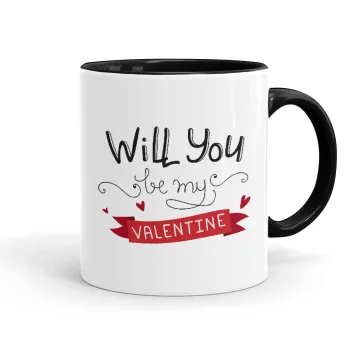 Will you be my Valentine???, Mug colored black, ceramic, 330ml