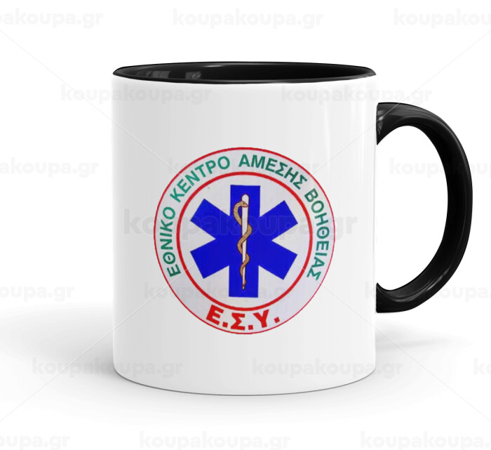 ΕΚΑΒ, Mug colored black, ceramic, 330ml