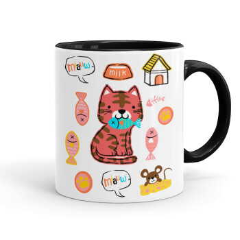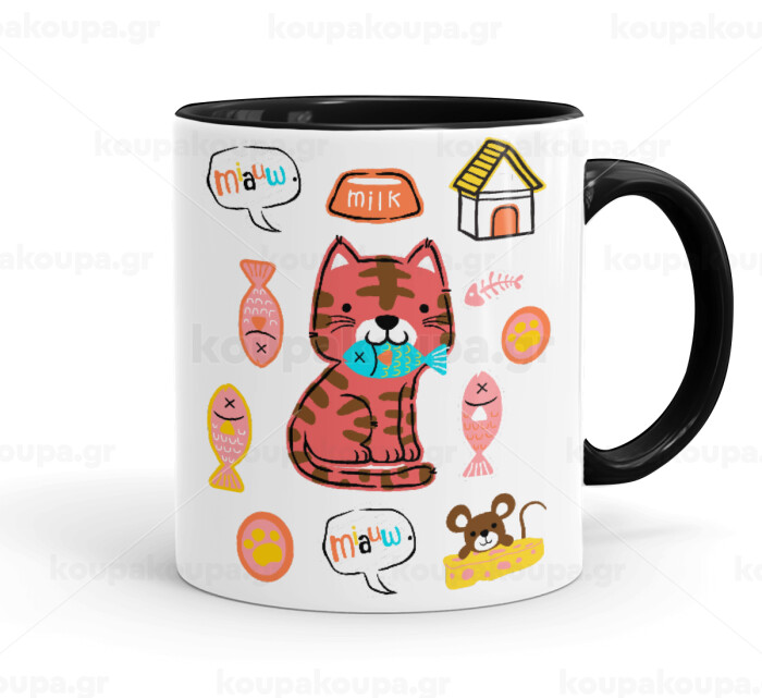 Cats and Fishes, Mug colored black, ceramic, 330ml