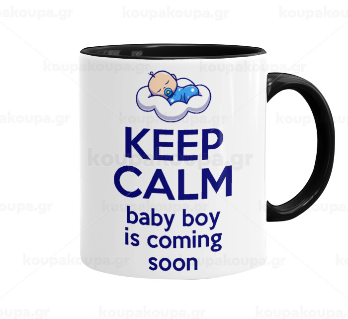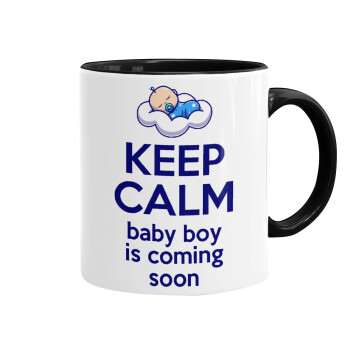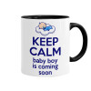 KEEP CALM baby boy is coming soon!!!, Mug colored black, ceramic, 330ml