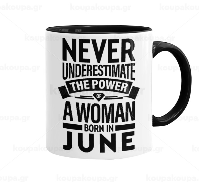 Never Underestimate the poer of a Woman born in..., Mug colored black, ceramic, 330ml