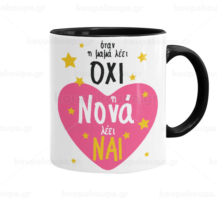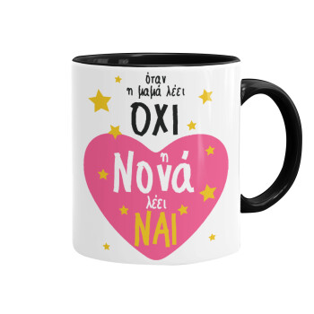 Η νονά λέει ναι!!!, Mug colored black, ceramic, 330ml
