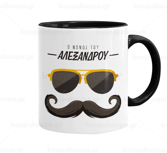 Ο νονός μου, μουστάκι με γυαλιά, Mug colored black, ceramic, 330ml