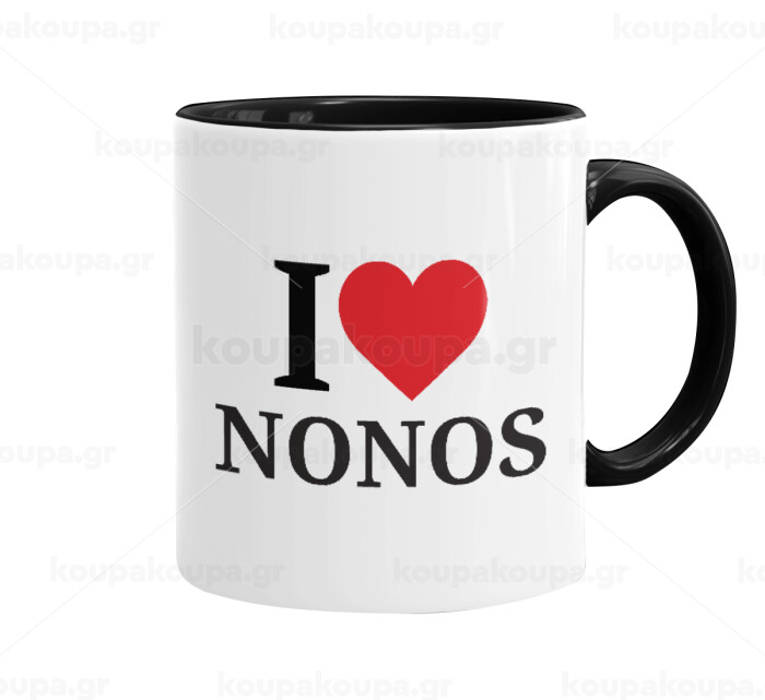 I Love ΝΟΝΟΣ, Mug colored black, ceramic, 330ml