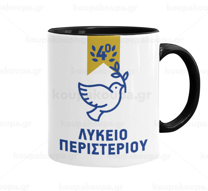 Έμβλημα Σχολικό μπλε/χρυσό περιστέρι, Mug colored black, ceramic, 330ml