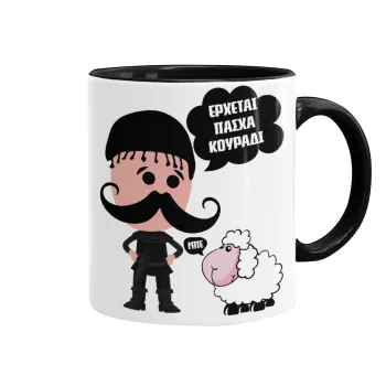 Κρητικός "Έρχεται Πάσχα κουράδι", Mug colored black, ceramic, 330ml