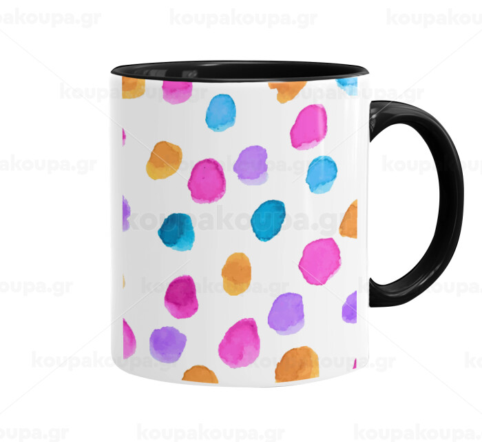 Watercolor dots, Mug colored black, ceramic, 330ml