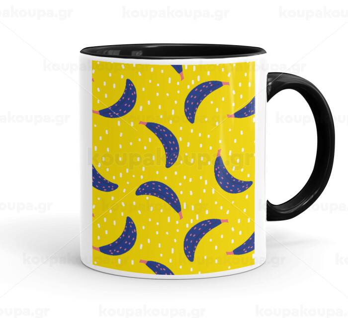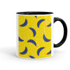 Yellow seamless with blue bananas, Mug colored black, ceramic, 330ml
