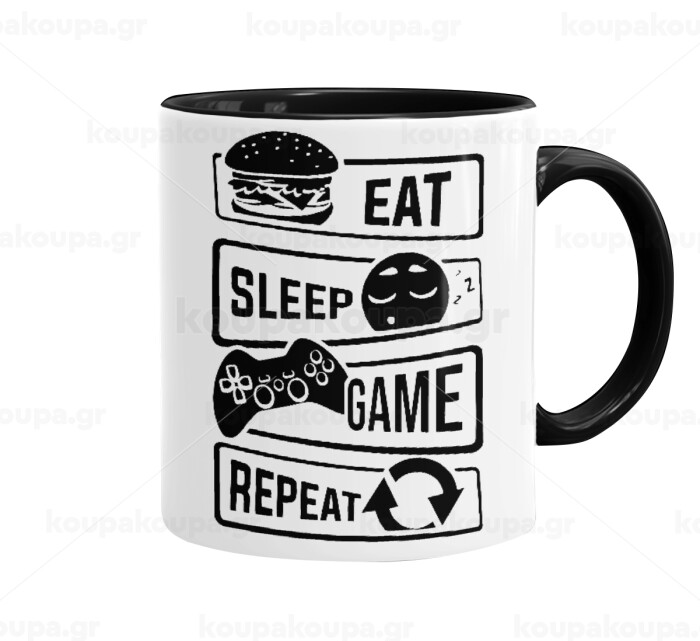Eat Sleep Game Repeat, Mug colored black, ceramic, 330ml