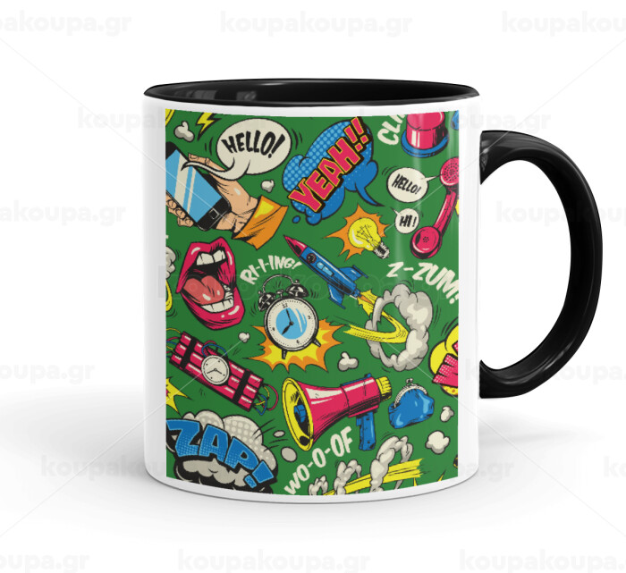 Pop art colorful seamless, Mug colored black, ceramic, 330ml