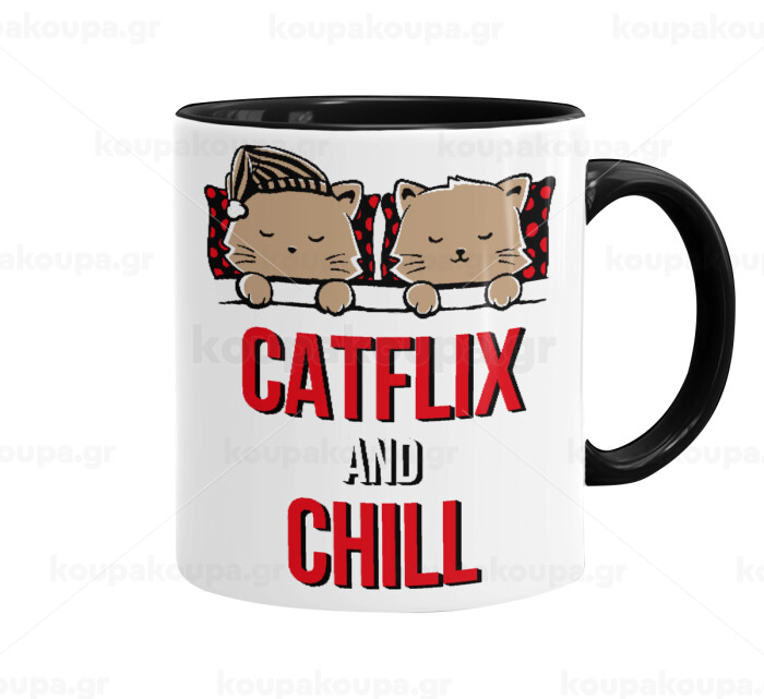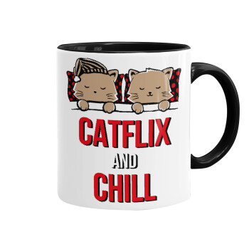 Catflix and Chill, Mug colored black, ceramic, 330ml