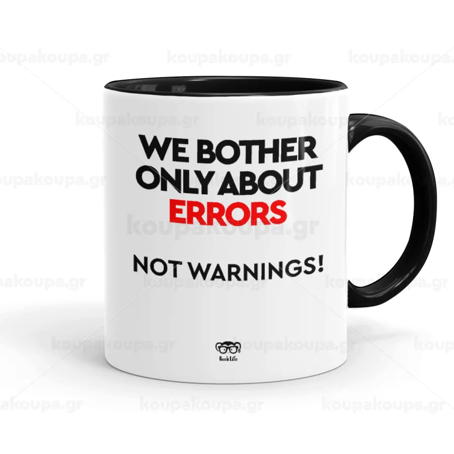 We bother only about errors, not warnings, Mug colored black, ceramic, 330ml