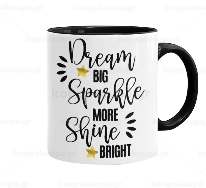 Dream big, Sparkle more, Shine bright, Mug colored black, ceramic, 330ml