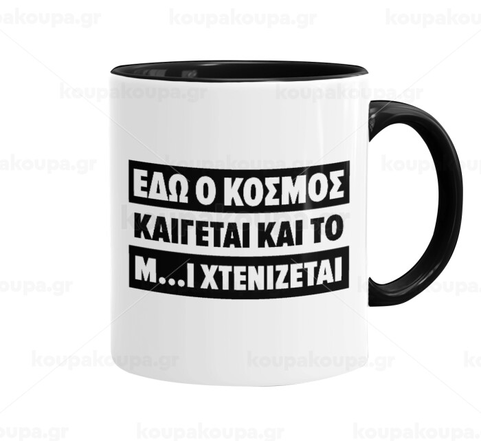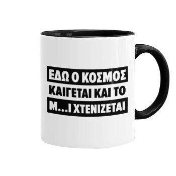 Εδώ ο κόσμος καίγεται και το Μ....Ι χτενίζεται, Mug colored black, ceramic, 330ml
