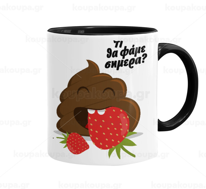 Τι θα φάμε σημερα???, Mug colored black, ceramic, 330ml