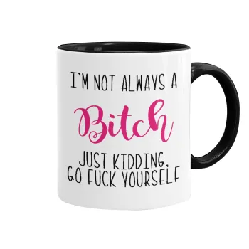 I'm not always a bitch, just kidding go f..k yourself , Mug colored black, ceramic, 330ml