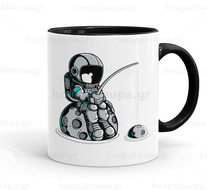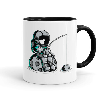 Little astronaut fishing, Mug colored black, ceramic, 330ml