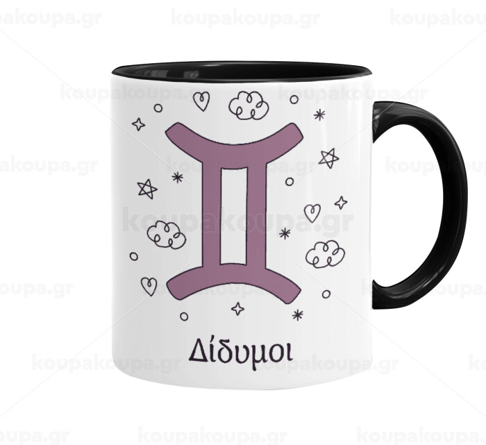 Ζώδια Δίδυμοι, Mug colored black, ceramic, 330ml