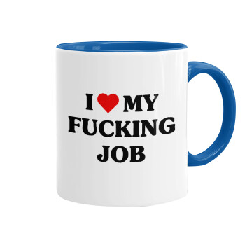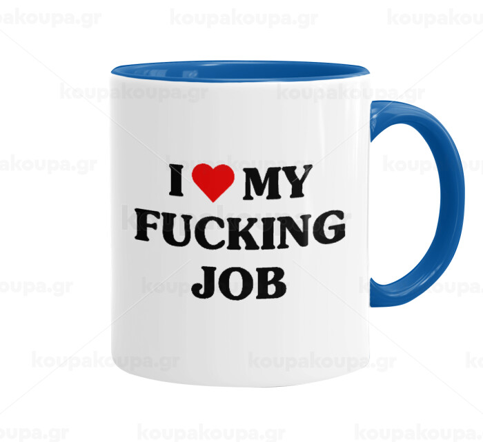 I love my fucking job, Mug colored blue, ceramic, 330ml