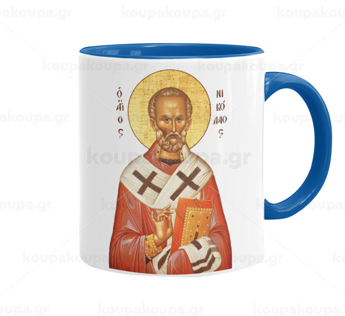 Saint Nicholas orthodox , Mug colored blue, ceramic, 330ml