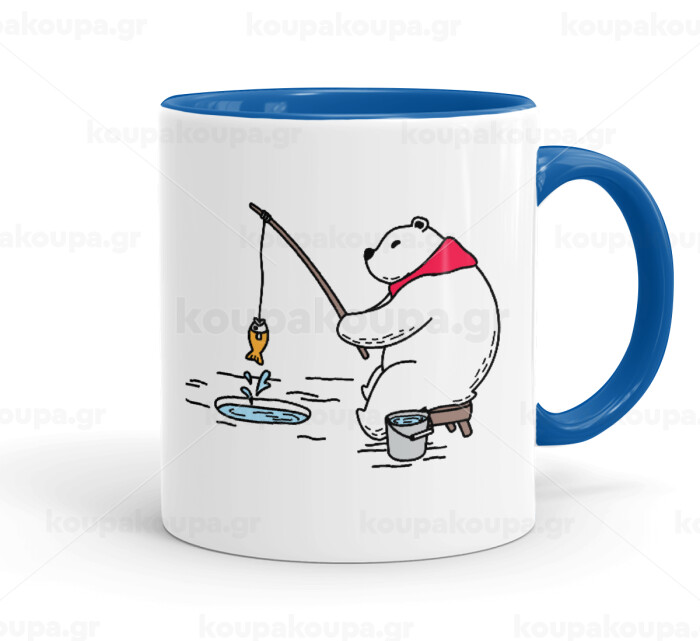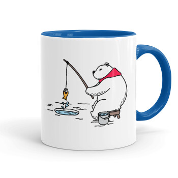 Bear fishing, Mug colored blue, ceramic, 330ml