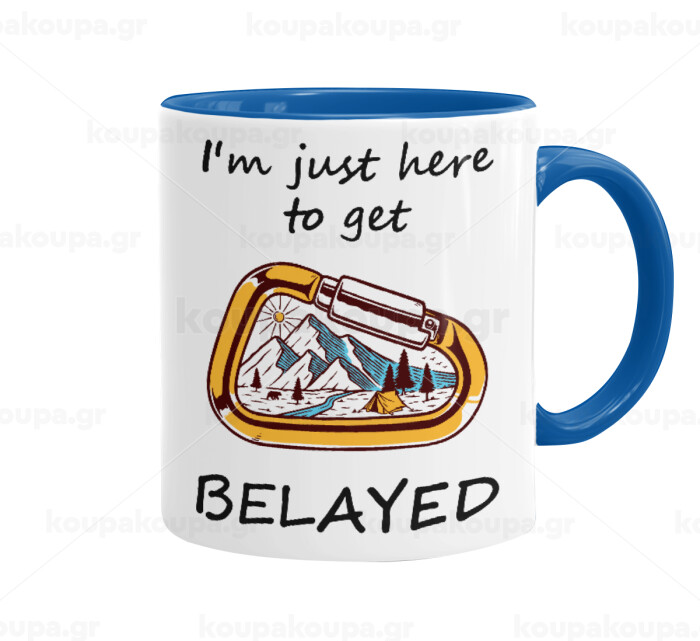 I'm just here to get Belayed, Mug colored blue, ceramic, 330ml