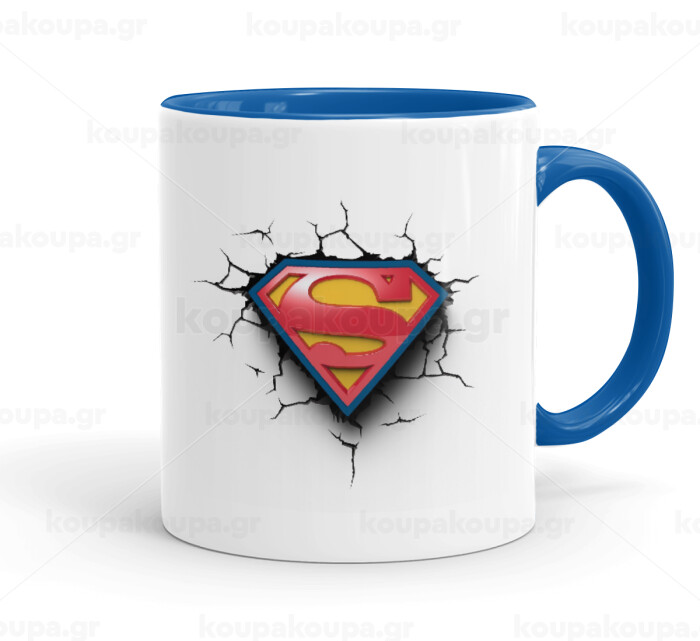 Superman cracked, Mug colored blue, ceramic, 330ml