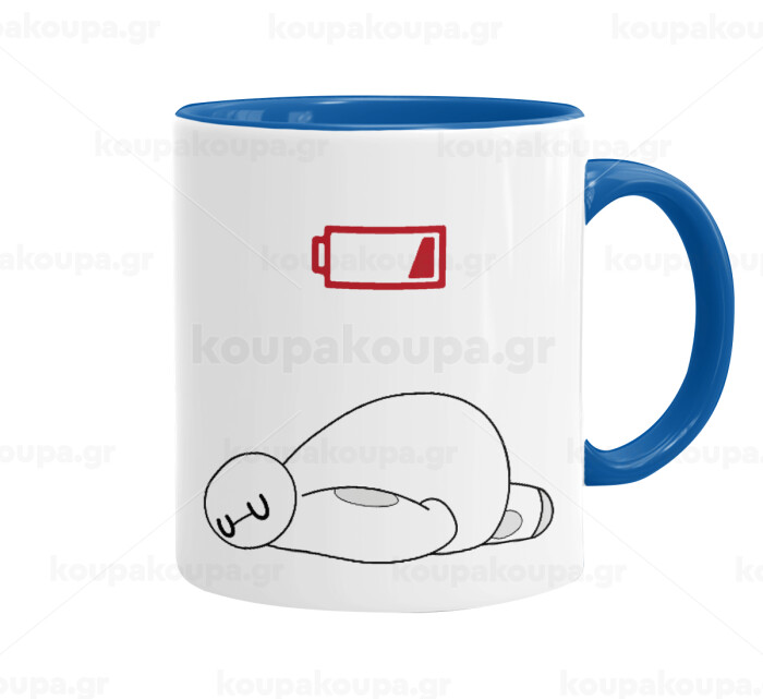 Baymax battery low, Mug colored blue, ceramic, 330ml
