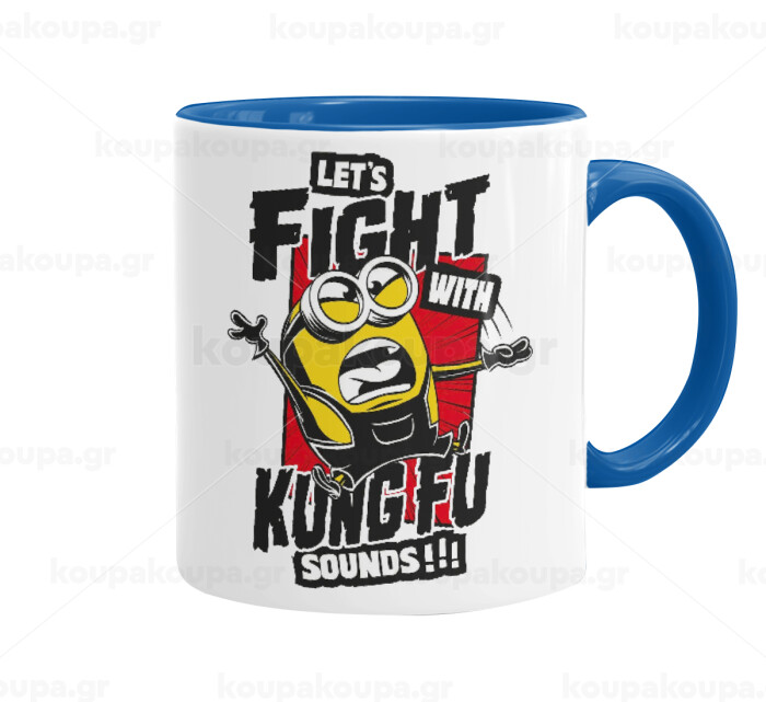 Minions Let's fight with kung fu sounds, Mug colored blue, ceramic, 330ml