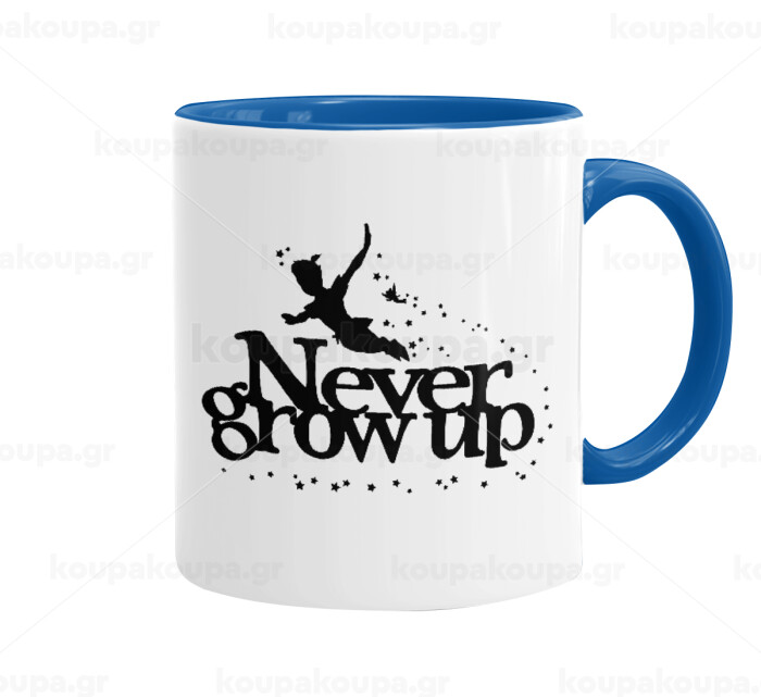 Peter pan, Never Grow UP, Mug colored blue, ceramic, 330ml