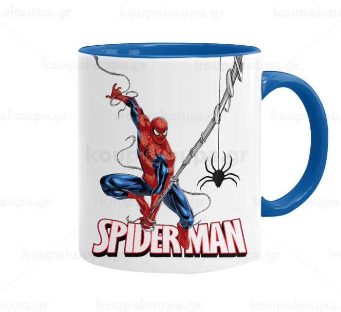 Spiderman fly, Mug colored blue, ceramic, 330ml