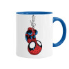 Spiderman upside down, Mug colored blue, ceramic, 330ml
