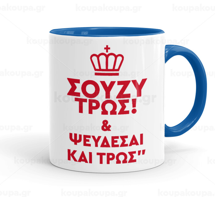 Σούζυ και ψεύδεσαι και τρως, Mug colored blue, ceramic, 330ml