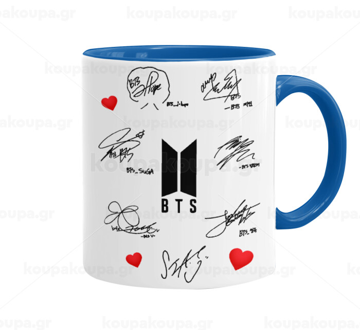 BTS signatures, Mug colored blue, ceramic, 330ml