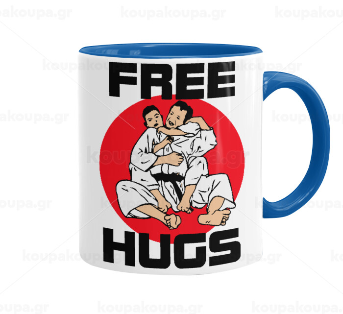 JUDO free hugs, Mug colored blue, ceramic, 330ml