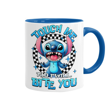 Stitch Touch Me And I Will Bite You, Mug colored blue, ceramic, 330ml