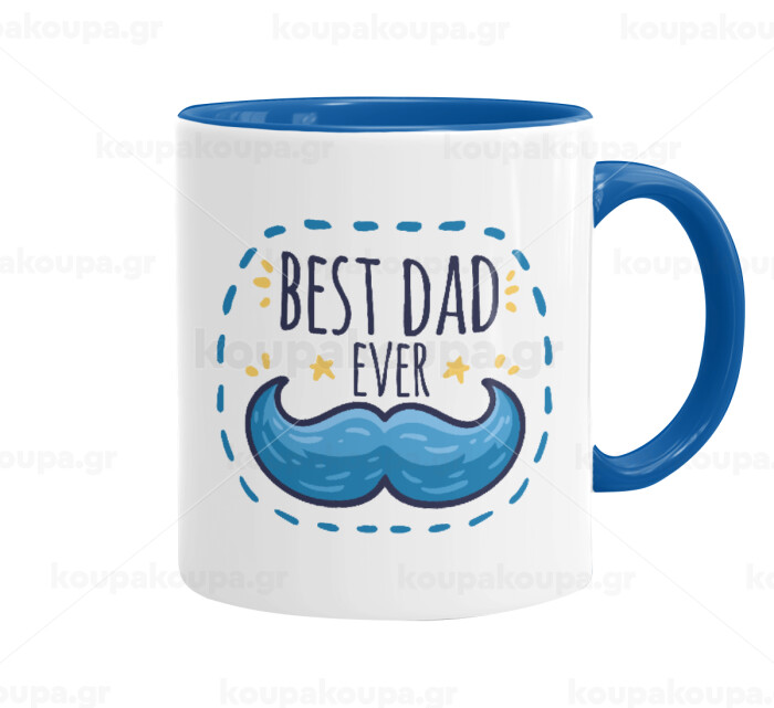 Best dad ever μπλε μουστάκι, Mug colored blue, ceramic, 330ml