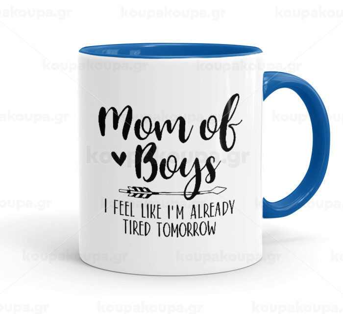 Mom of boys i feel like im already tired tomorrow, Mug colored blue, ceramic, 330ml