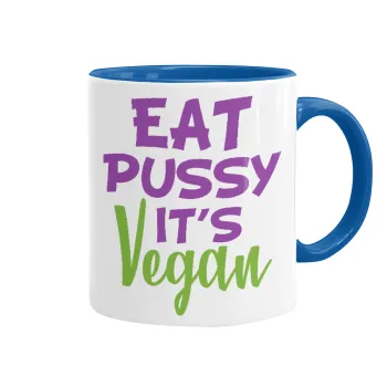EAT pussy it's vegan, Mug colored blue, ceramic, 330ml