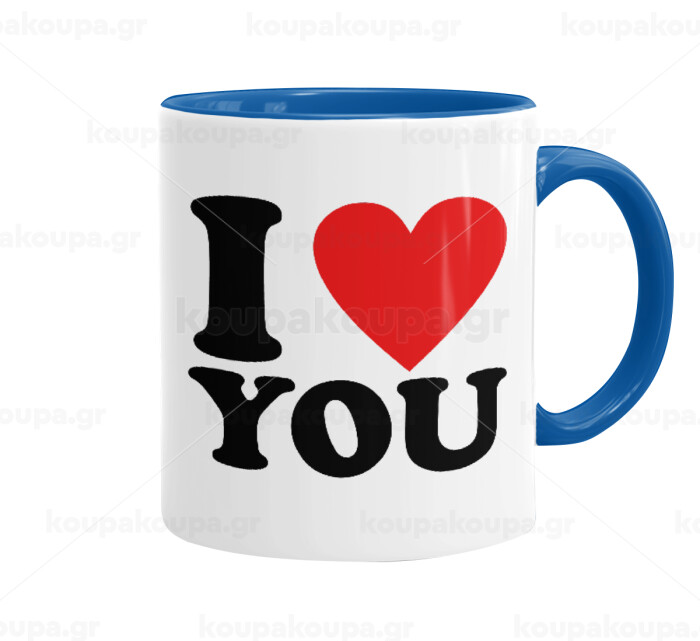 I LOVE YOU, Mug colored blue, ceramic, 330ml