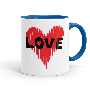 I Love You red heart, Mug colored blue, ceramic, 330ml