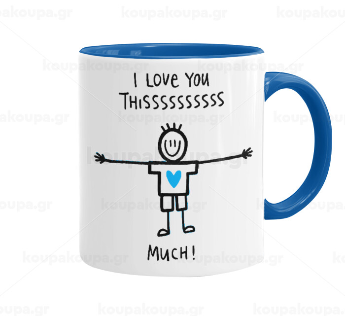 I Love you thissss much (boy)..., Mug colored blue, ceramic, 330ml