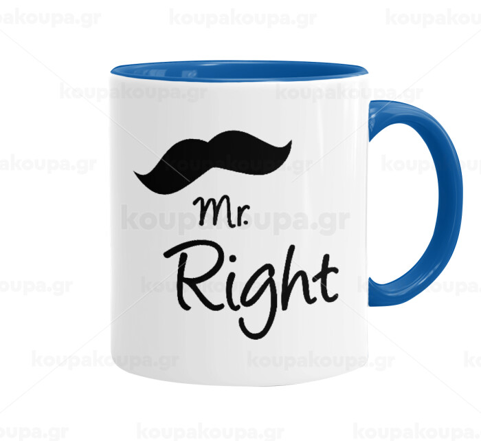 Mr right Mustache, Mug colored blue, ceramic, 330ml