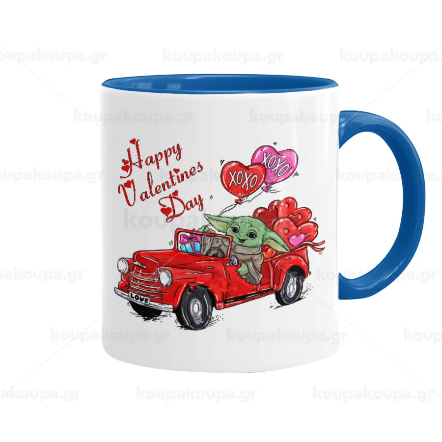 Yoda, happy valentines day (xoxo), Mug colored blue, ceramic, 330ml