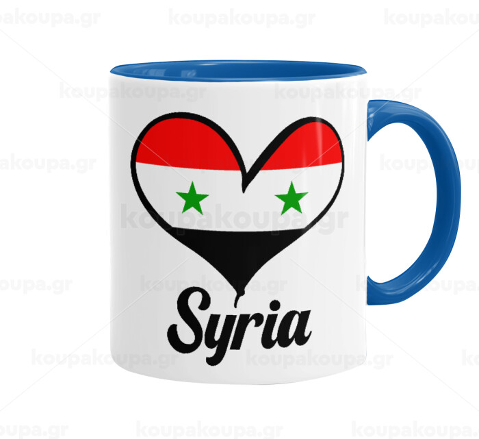 Syria flag, Mug colored blue, ceramic, 330ml